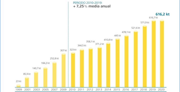Pese a los negativos efectos causado por la pandemia de coronavirus, en 2020 los ciudadanos españoles reciclaron 616.282 toneladas de envases de plástico domésticos, manteniendo estable la cantidad alcanzada el año anterior. Esta cifra es ...